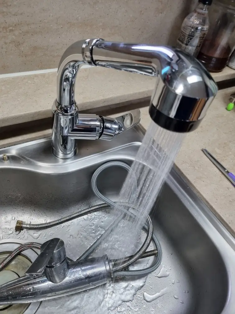 설치가 끝나면 물을 천천히 틀어 누수가 없는지 확인합니다. 수전 본체 아래, 연결부, 호스 연결부에 물방울이 맺히지 않는지 꼼꼼히 보고, 물줄기 방향이 안정적인지 봅니다.